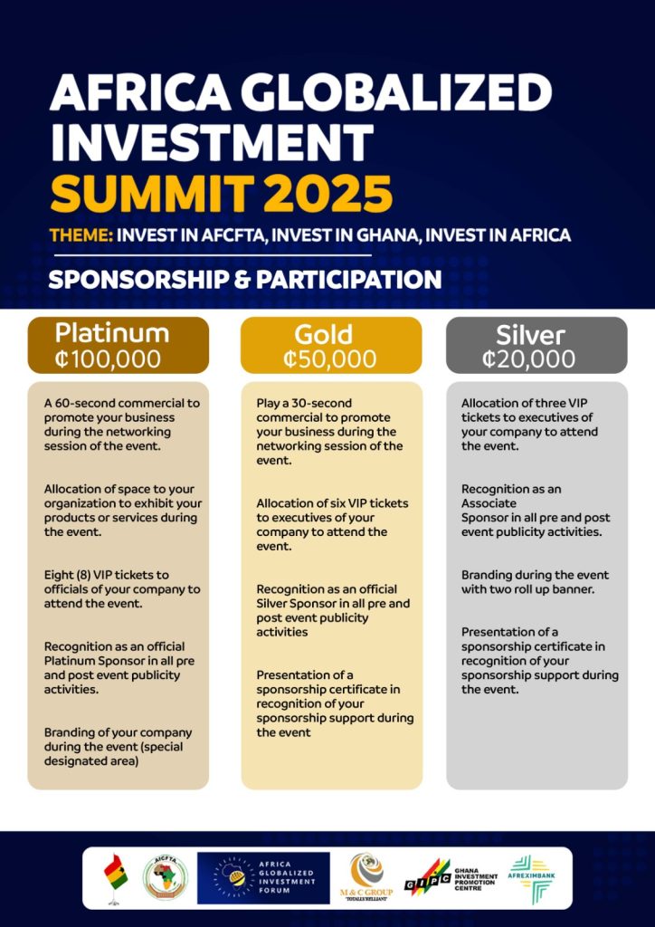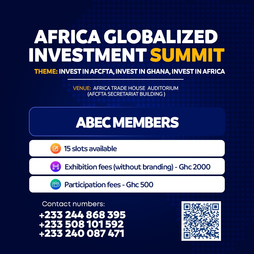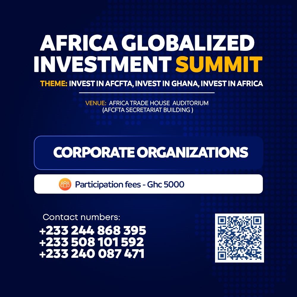 Africa Globalized Investment Summit is an international Flagship Summit focused on organising Investments Events Rotationally in AfCFTA Countries, in partnership with the AfCFTA Secretariat, and Various African Investment Regulatory Authorities.